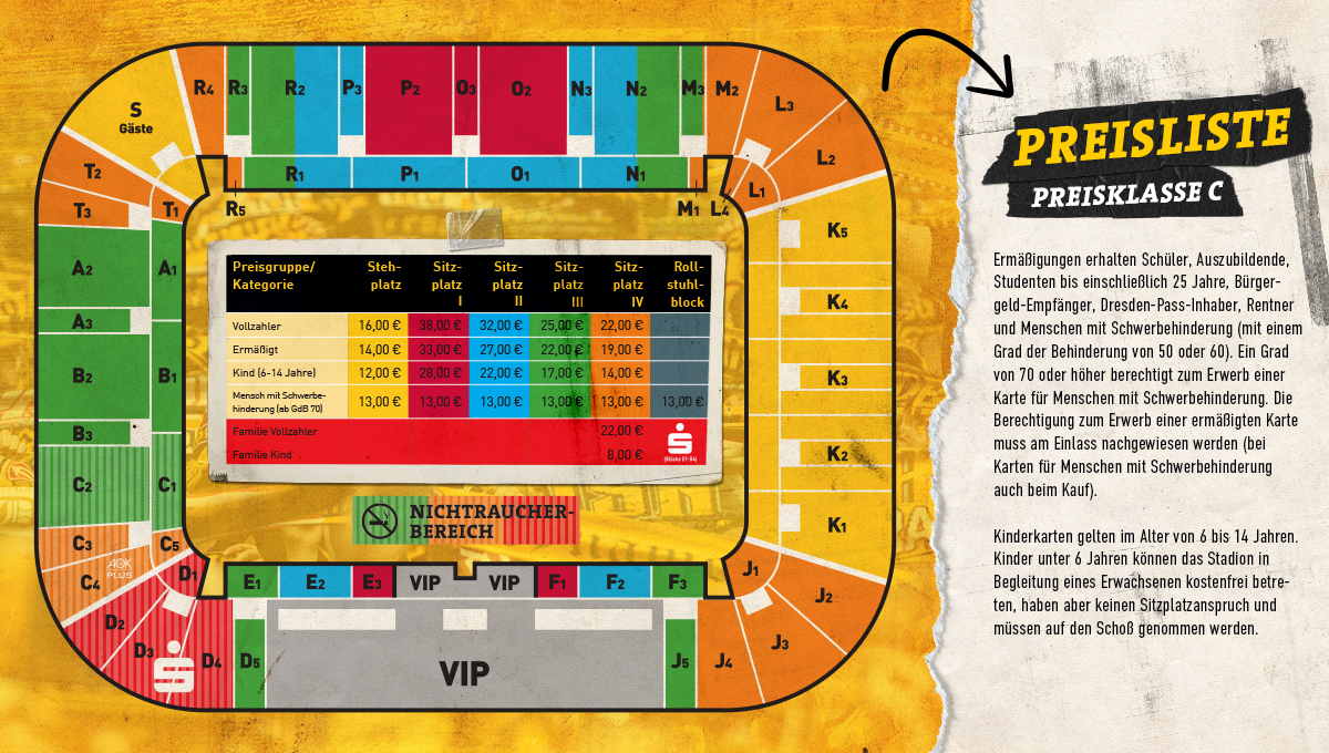 Hier findet Ihr die Preisübersicht für das Heimspiel und den Stadionplan.