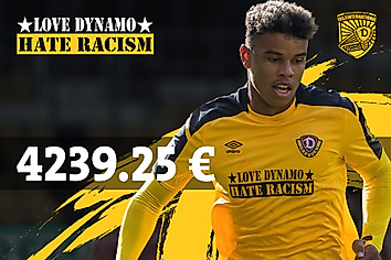 Die Versteigerung der getragenen LDHR-Sondertrikots von Kevin Broll, Heinz Mörschel, Michael Sollbauer, Christoph Daferner und Ransford-Yeboah Königsdörffer aus dem Heimspiel gegen den 1. FC Nürnberg zu Gunsten des guten Zweckes brachte insgesamt 4.239,25 Euro ein.Jürgen Wehlend, Geschäftsführer der SGD, sagt: „Vielen Dank an die gesamte ‚Dynamo-Familie‘, die den Aktionsspieltag ‚LOVE DYNAMO –…