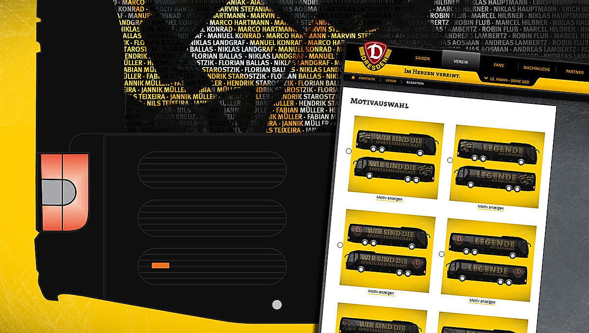 „Danke für eure Treue!“ – Unter dieser Überschrift steht die Aktion Mannschaftsbus 2017/18.Alle Vereinsmitglieder der SG Dynamo Dresden können mitmachen, ihren Namen auf den Mannschaftsbus bringen und die Neuhaus-Elf in der nächsten Saison zu allen Heim- und Auswärtsspielen begleiten.
