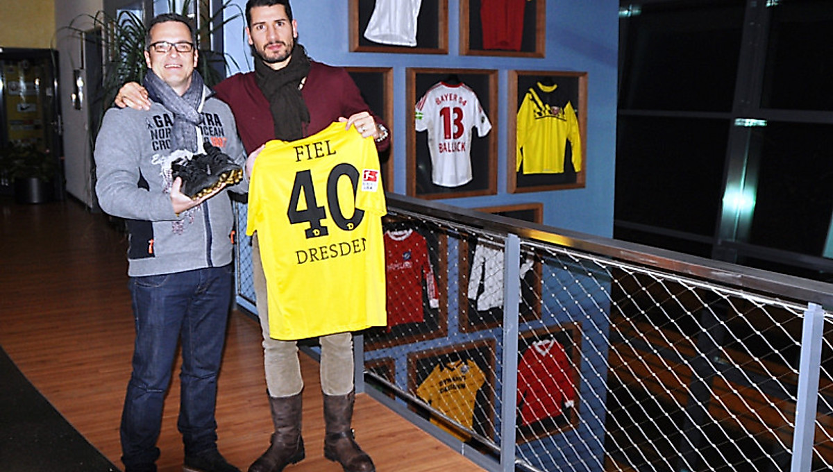Cristian Fiel versteigert gemeinsam mit der Dresdner Sportstiftungsgesellschaft Astora und dem „Dresdner Fußballmuseum“ seine Aufstiegsschuhe aus dem Relegationsspiel im Sommer 2011 gegen Osnabrück und sein Trikot vom kommenden Auswärtsspiel beim TSV 1860 München am 16.12.2012.