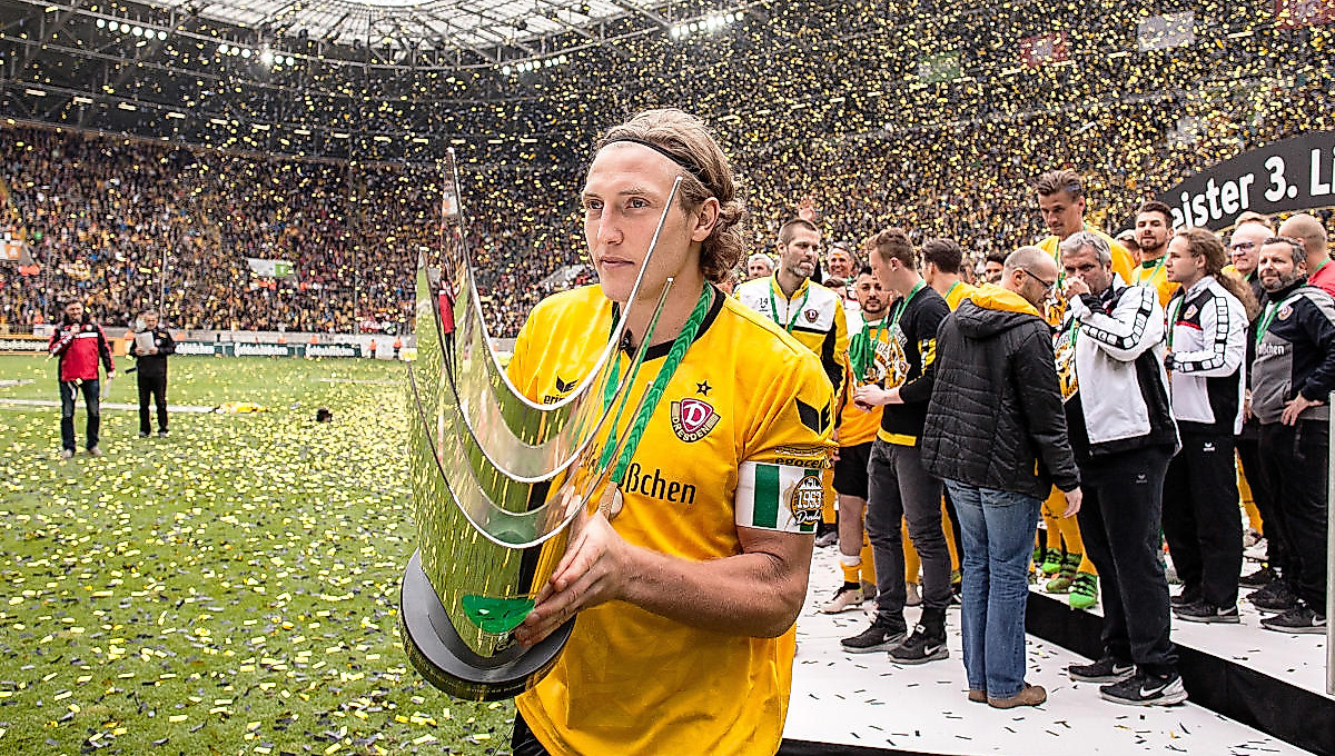 Unsere Aufstiegssaison ist für mich nach wie vor emotional das Größte, was ich erleben durfte. Wenn ich mich an die Zeit zurückerinnere, kommt mir nach wie vor ein riesiges Lächeln ins Gesicht und eine unbeschreibliche Wärme in den Körper. Verbunden natürlich auch mit einem kleinen weinenden Auge, weil es so eine schöne Zeit war und man gerne noch einmal dort sein würde. Nicht nur Dynamo Dresden, sondern vor allem auch die Stadt, die ganzen lieben Menschen, die ich kennenlernen durfte, und diese ganz besonderen Fans bedeuten mir unglaublich viel. Das ist für mich am geilsten, besten und größten in meiner Karriere einzuschätzen. Der Aufstieg mit Huddersfield in die Premier League war natürlich sportlich noch einmal ein ganz anderes Kaliber. Aber von den Emotionen und der menschlichen Seite, war Dresden etwas Einmaliges. Und wird es immer bleiben.