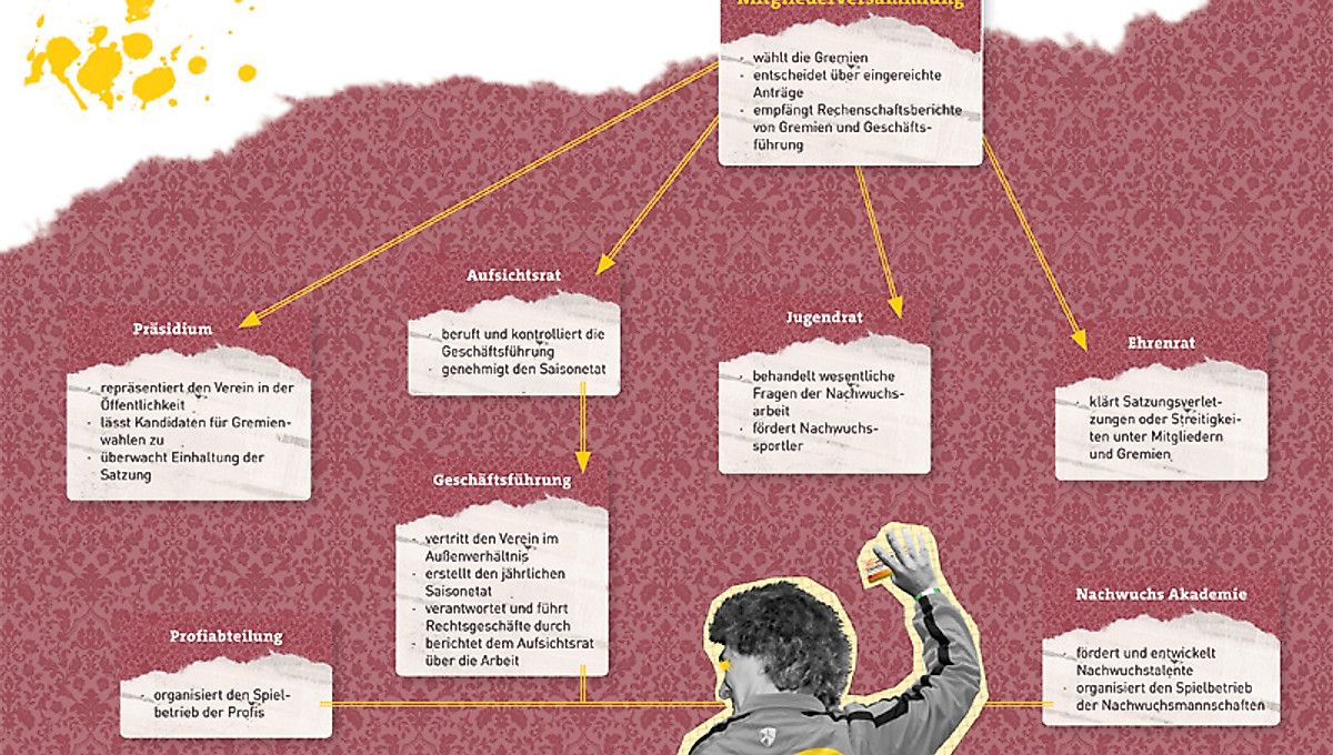 {media-left}Neben der Mitgliederversammlung hat die SG Dynamo Dresden mehrere andere „Organe“, wie im Organigramm ganz oben zu sehen ist. Zusammen bilden diese Organe den Verein. Doch bevor wir weiter über die Mitgliederversammlung sprechen, möchten wir drei wichtige und komplizierte Fragen beantworten: Was ist eigentlich ein Verein? Weshalb gibt es so viele davon? Und vor allem – warum gibt es die SG Dynamo Dresden? Schauen wir, was der Duden zum ersten Teil der Frage sagt: