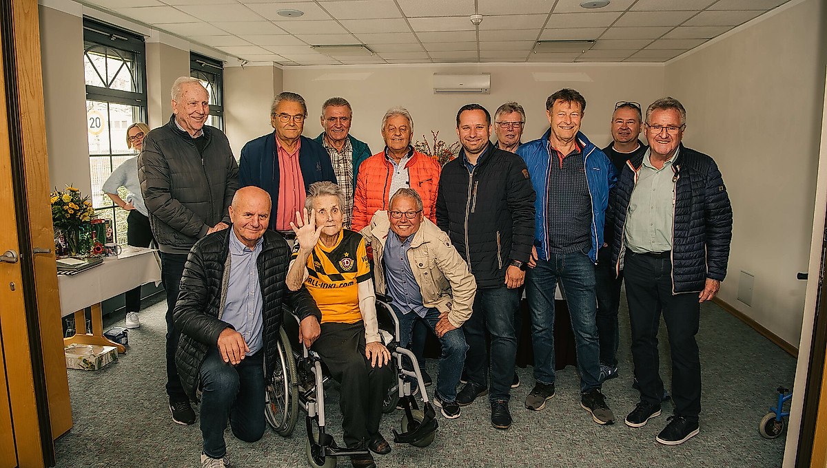 Auch ein Geschenk des Vereins hatte Rehn selbstverständlich im Gepäck – und zwar in Form einer Einladung: Am 18. Mai 2024 wird die Jubilarin im VIP-Bereich des Rudolf-Harbig-Stadions zu Gast sein und das letzte Heimspiel der Saison gegen den MSV Duisburg vor Ort erleben. Dabei dürfte sie zahlreiche ehemalige Spieler wiedertreffen, die auch an ihrem Ehrentag vorbeischauten. Klaus Sammer, Dietmar Urbanek, Frank Ganzera, Rainer Sachse, Udo Schmuck, Frank Richter oder Claus Lichtenberger sorgten für eine illustre Geburtstagsrunde.