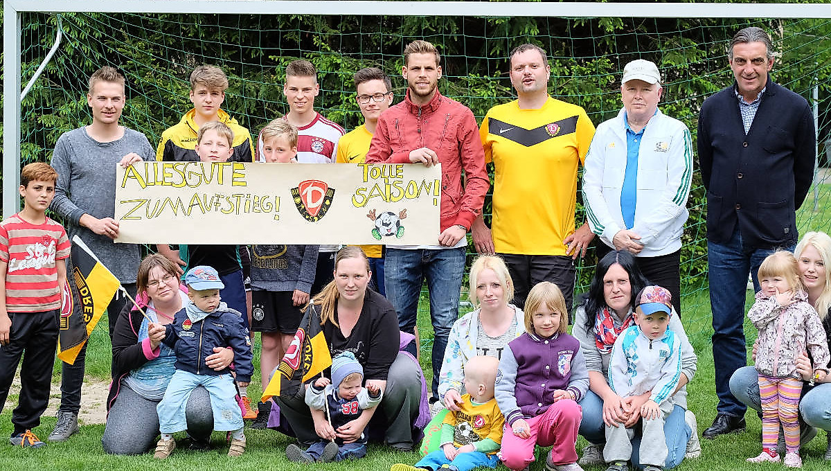Dynamos Sportgeschäftsführer Ralf Minge hat am Donnerstag zusammen mit den Profis Justin Eilers und Luca Dürholtz das „Haus am Czorneboh“ der Kinderarche Sachsen in Wuischke besucht. Die Sportgemeinschaft hatte im April 2015 5.000 Euro an die soziale Einrichtung gespendet. Mit dem Geld wurde ein Gruppenraum im Haus neu gestaltet.Das dynamische Trio gab Autogramme und plauderte mit den Kindern. Außerdem überreichten die Mädchen und Jungen den drei Schwarz-Gelben ein Banner mit Glückwünschen zum Zweitliga-Aufstieg und einer tollen Saison. Luca Dürholtz zog sich anschließend die Torwarthandschuhe an und spielte mit den Mädchen und Jungs noch eine Runde Fußball.