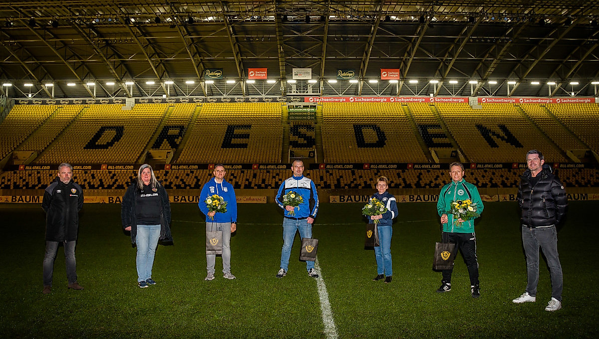 Weil das Heimspiel der SGD gegen den Karlsruher SC am Sonntag aufgrund der Sächsischen Coronavirus-Schutz-Verordnung vor Geisterkulisse ausgetragen wird, musste die Ehrung in diesem Jahr in etwas kleinerem Rahmen stattfinden.