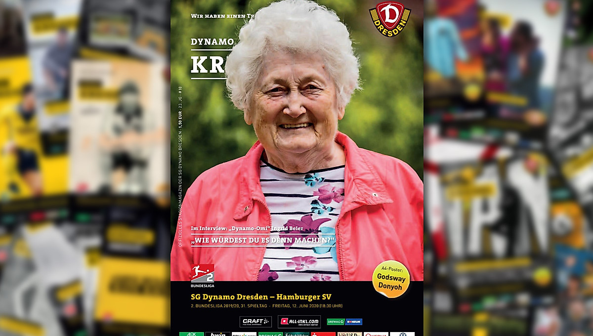 Diesmal findet ihr im Heft – wie immer mit zahlreichen Informationen rund um Dynamo und den Spieltag – ein Interview mit Ingrid Beier. In wenigen Tagen feiert sie ihren 90. Geburtstag. Für uns Grund genug, ein paar Stück Kuchen in der benachbarten Bäckerei zu kaufen und uns auf einen Kaffee bei der Frau einzuladen, die alle nur als „Dynamo-Omi“ kennen. Wir stellen ihr 90 Fragen zum 90. Geburtstag und bewegen uns dabei inhaltlich durch die Vergangenheit, verweilen in der Gegenwart und schauen zusammen in die Zukunft.