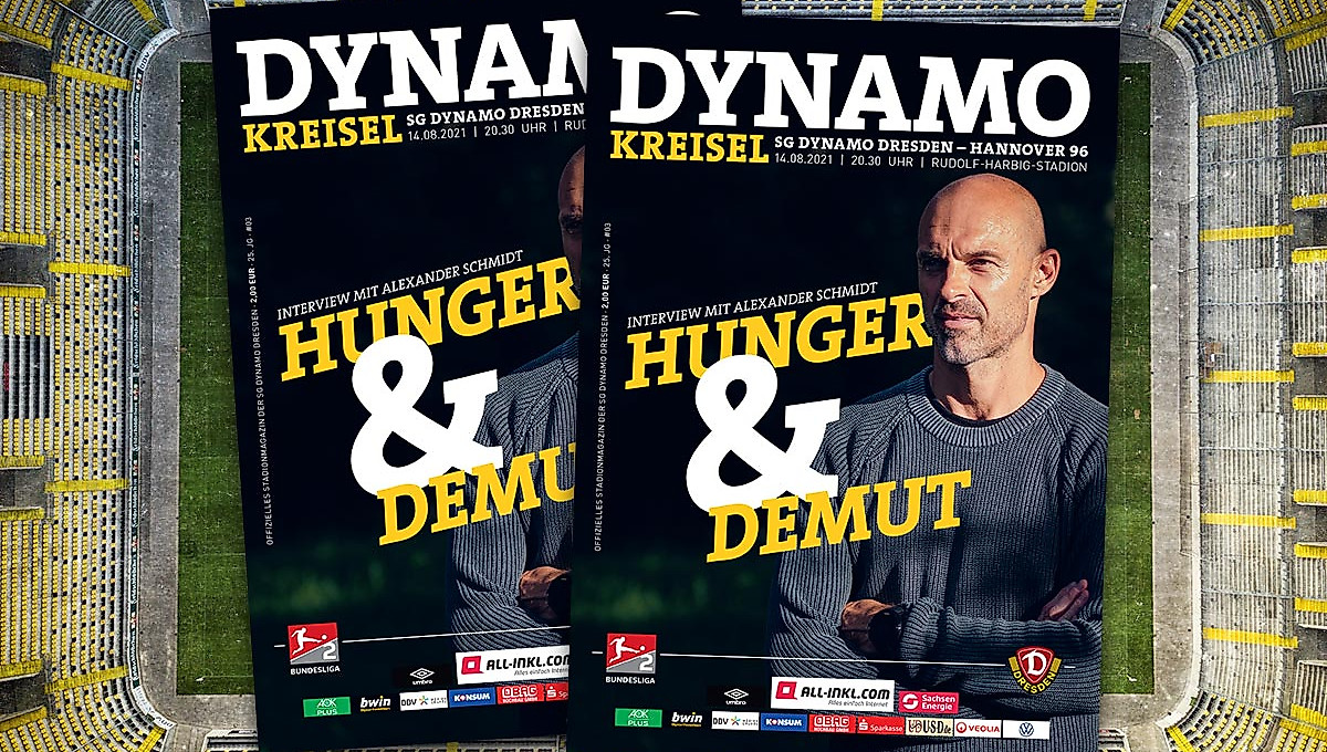 Zum Heimspiel gegen Hannover 96 erscheint die neueste Ausgabe des Stadionmagazins „Dynamo-KREISEL”.Diesmal findet ihr im Heft – wie immer mit zahlreichen Informationen rund um die SGD und den Spieltag gespickt – unter anderem ein Interview mit Cheftrainer Alexander Schmidt, unter dem nach dem Aufstieg und der Drittliga-Meisterschaft auch der Start in die neue Spielzeit geglückt ist: Vier Punkte aus den ersten zwei Spielen in der Liga, die 2. Pokal-Runde erreicht und saisonübergreifend weiter ungeschlagen.