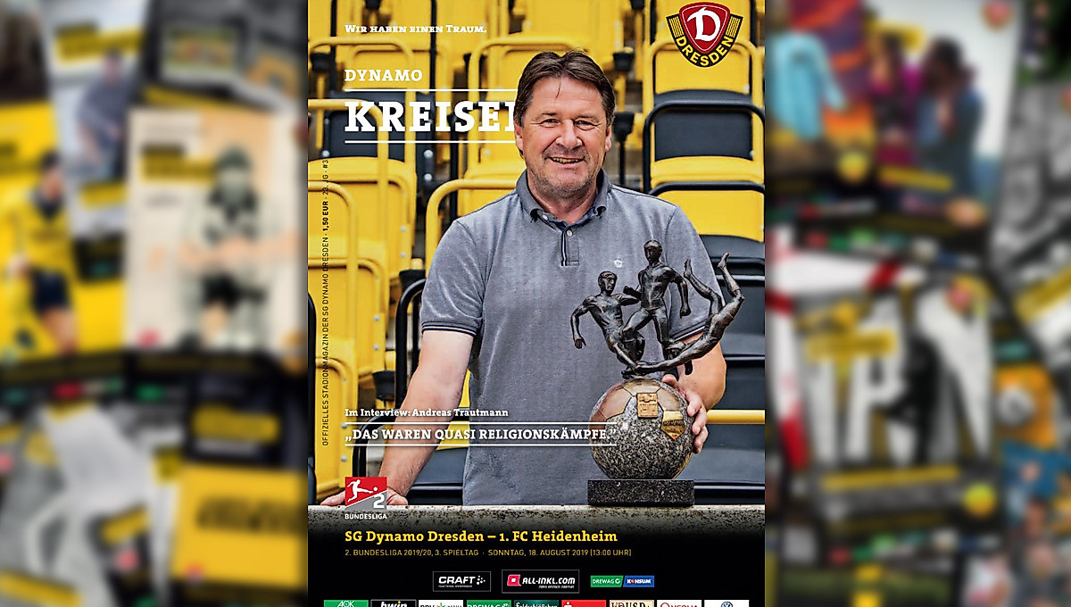 Diesmal findet ihr ihm Heft – wie immer mit zahlreichen Informationen rund um Dynamo und den Spieltag – ein ausführliches Interview mit Andreas Trautmann. Als Aktiver bestritt "Trautl" mit 372 Partien (77 Tore) die sechstmeisten Einsätze in der Geschichte der SGD sowie nach „Dixie“ Dörner und Reinhard Häfner die