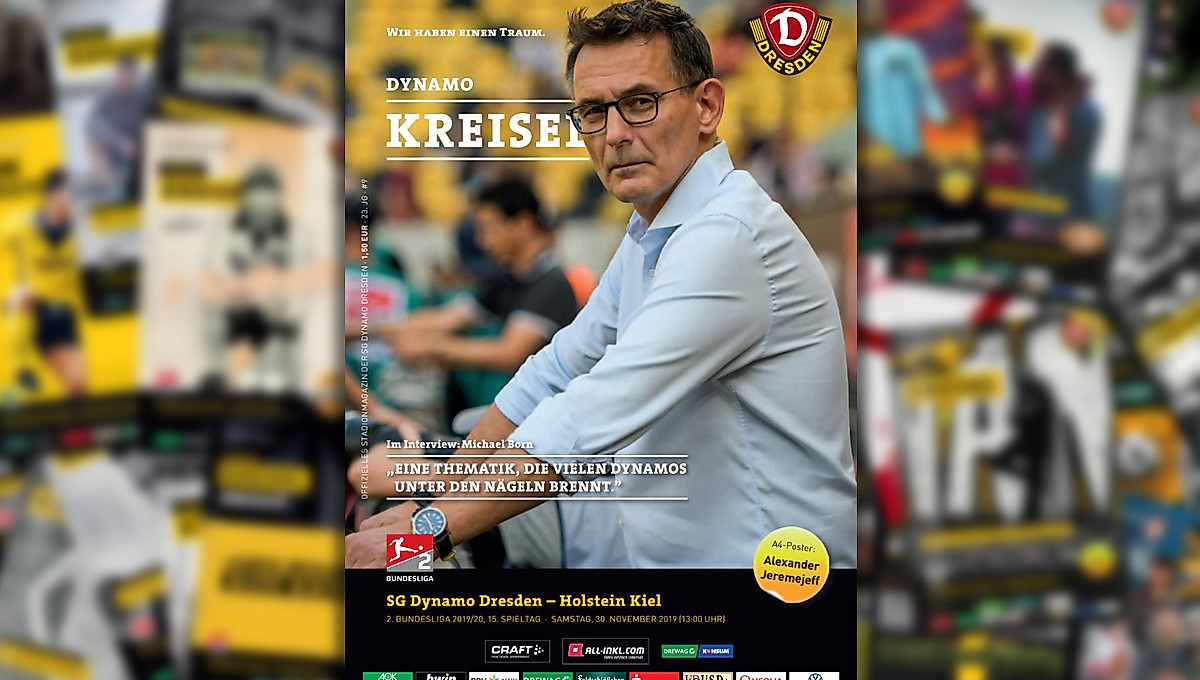 Diesmal findet ihr ihm Heft – wie immer mit zahlreichen Informationen rund um Dynamo und den Spieltag – ein ausführliches Interview mit Michael Born. Der Kaufmännische Geschäftsführer der SGD gibt darin interessante Einblicke in die zahlreichen Projekte, die die Sportgemeinschaft im Moment beschäftigen. Zu den Themen gehörten dabei ein Fazit der Ordentlichen Mitgliederversammlung, die positive Entwicklung von Dynamos finanzieller Situation, der Digitalisierungsprozess und der Baufortschritt des neuen Trainingszentrums.