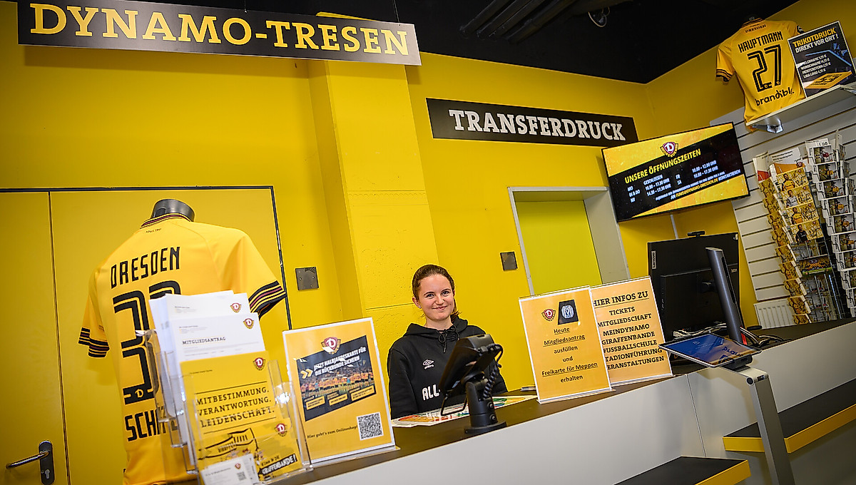 Der Dynamo-Tresen im Fanshop an der Lennéstraße 12 bietet allen Fans der Sportgemeinschaft die Möglichkeit, verschiedene Themen mit wenig Zeitaufwand in einem Schritt zu verbinden – zum Beispiel den Abschluss einer Mitgliedschaft mit dem Kauf eines Tickets. Außerdem geben die Mitarbeiterinnen und Mitarbeiter vor Ort Auskunft zu Giraffenbande, meinDynamo, Fußballschule, Stadionführungen und allen anderen Fragen rund um den Verein.