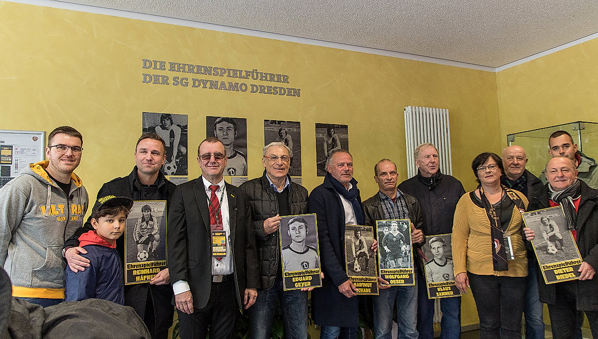 Im Rahmen des Traditionstages zum 64. Vereinsgeburtstag haben Dynamos Ehrenspielführer auch im Stadioninneren einen Ehrenplatz erhalten. Im VIP-Foyer wurden Porträts und Infotafeln zu den acht Ehemaligen angebracht, die stellvertretend für eine lange Reihe verdienter Spieler der Dynamo-Historie stehen.