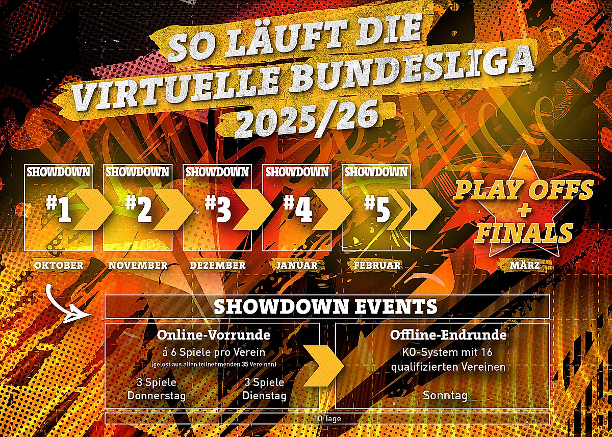 Alle Mannschaften sammeln sowohl während der Online-Vorrunde, als auch bei den Offline-K.O.-Turnieren Punkte für ein übergeordnetes Abschluss-Ranking. Auf dessen Grundlage wird ermittelt, welche 16 Clubs sich für die Playoffs der VBL (25./26. Februar 2026) und welche acht Mannschaften sich direkt für das Finale (7./8. März 2026 in Hamburg) qualifizieren, um den virtuellen Deutschen Meister auszuspielen.