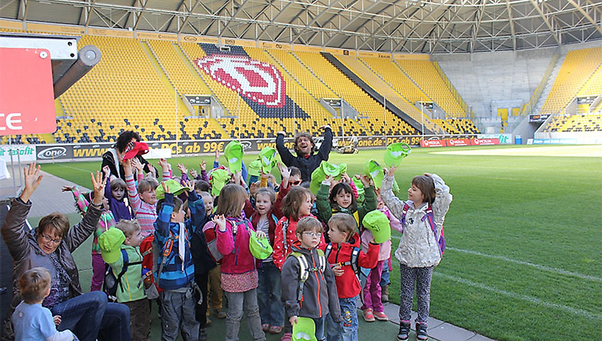 Zum Weltgeschichtentag 2014 hörten Kinder im „glücksgas stadion“ eine Geschichte