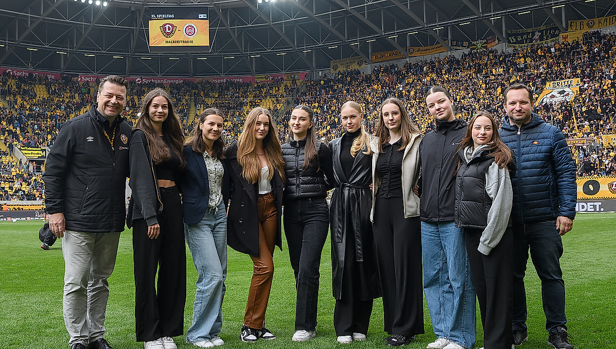 Zum gestrigen Heimsieg gegen Wehen Wiesbaden durfte die Sportgemeinschaft die Synchroneiskunstläuferinnen der „Saxony Ice Pearls“ im Rudolf-Harbig-Stadion begrüßen. Insgesamt acht junge Frauen der mehrfachen Deutschen Meisterinnen waren in der Halbzeitpause zu einem interessanten und unterhaltsamen Interview auf dem Rasen und sahen darüber hinaus die Partie gemeinsam auf der Ehrentribüne.