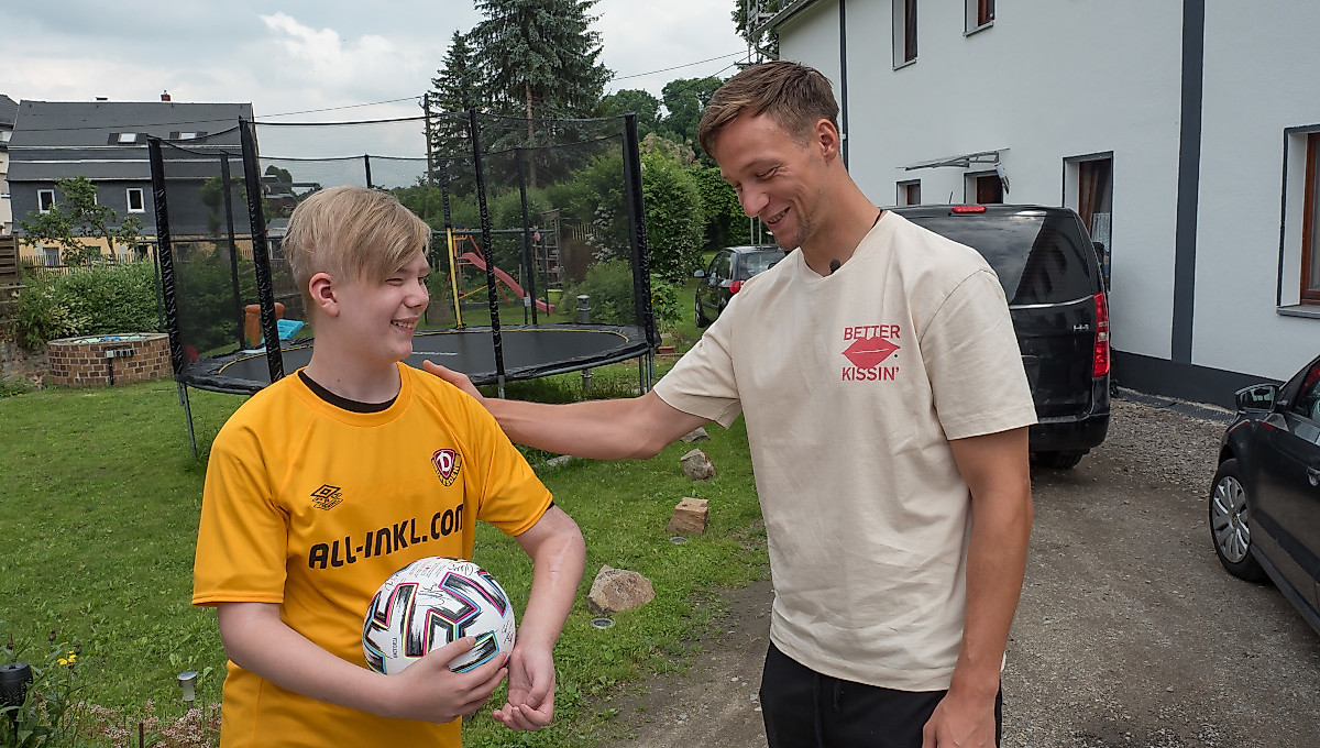 Deshalb machte sich der 28-jährige Dynamo-Profi mit einigen schwarz-gelben Präsenten im Gepäck vor Kurzem mit dem Auto auf den Weg in die Nähe von Chemnitz, wo er den tapferen Teenager zuhause besuchte.