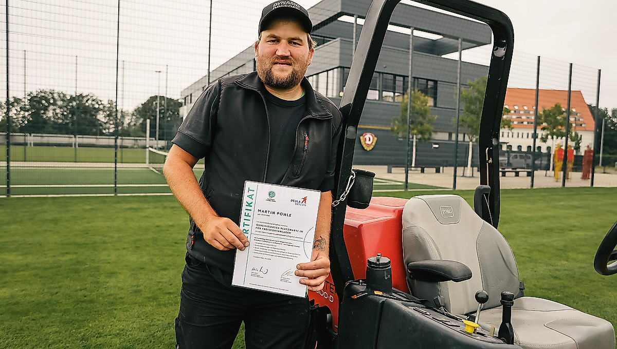 In dieser Funktion muss der 34-Jährige nun mindestens drei Jahre arbeiten und hat dann die Möglichkeit, mit der Weiterbildung zum Fach-Agrarwirt die nächste Qualifikationsstufe zu erwerben. Darüber hinaus lebt Pohle Schwarz-Gelb wie kaum ein anderer. Abseits seiner täglichen Arbeit im Trainingszentrum unterstützt er freiwillig und auf ehrenamtlicher Basis das Greenkeeping-Team des Rudolf-Harbig-Stadions zu den Heimspielen der Sportgemeinschaft und sorgt dabei für beste Bedingungen im Trainings- und Spielbetrieb bei Dynamo. Lieber Martin, wir sind stolz, dass Du ein Teil von uns bist. Danke für Deinen Einsatz und Herzlichen Glückwunsch zur bestandenen Weiterbildung!
