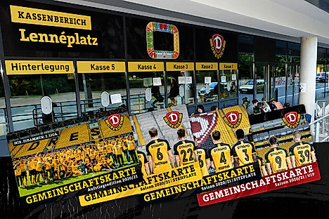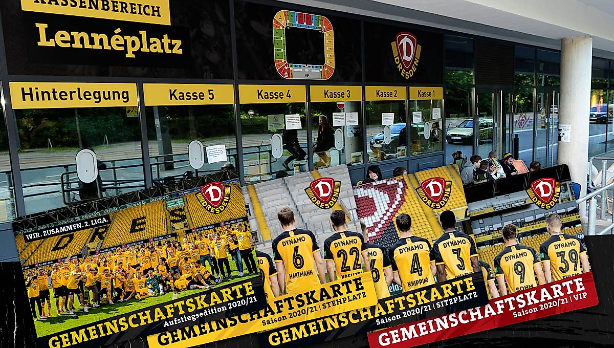 Die symbolischen Jahreskarten der Saison 2020/21 in den Kategorien „Stehplatz“, „Aufstiegsedition“, „Sitzplatz“ und „VIP“ können ab sofort direkt am Rudolf-Harbig-Stadion im Kassenbereich links vom Fanshop erworben werden (Öffnungszeiten: Mo.-Sa., je 10-18 Uhr).Der direkte Verkauf der Gemeinschaftskarten im Kassenbereich an der Lennéstraße findet bis einschließlich 12. Juni statt. Es gilt dabei auch weiterhin unverändert die Pflicht zum Tragen einer Mund-Nasen-Bedeckung (medizinische, FFP-2- oder vergleichbare Maske) und zur Abgabe von notwendigen Informationen zur Kontaktnachverfolgung.
