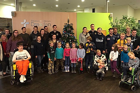 Der „Dresdner Mannschaftsspitzensport“ veranstaltete am Donnerstag eine karitative Weihnachtsfeier. Vertreter von SG Dynamo Dresden, Dresdner SC 1898 Volleyball, Dresden Monarchs, Dresdner Eislöwen, HC Elbflorenz und Dresden Titans waren am Nachmittag im Städtischen Klinikum Dresden zu Gast, um den Patienten der Kinderstationen eine vorweihnachtliche Freude zu bereiten.