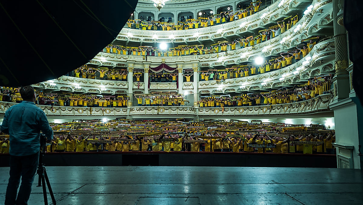 Am 18. Dezember 2017 öffnete die Semperoper Dresden ihre Pforten für eine schwarz-gelbe Choreografie. Andreas Mühe, vielfach ausgezeichneter Fotograf und Künstler, setzte ULTRAS DYNAMO im Zuschauerraum des weltberühmten Opernhauses in Szene. Das Foto wurde Teil des Jahresheftes für die Opernspielzeit 2018/19, das am 22. Februar präsentiert wurde.„Es ist eine phantastische Aufnahme entstanden. Andreas Mühe hat uns drei Motive zur Auswahl gestellt, gemeinsam haben wir uns dann für das Foto entschieden, das wir alle für das stärkste halten“, erklärte Susanne Springer, Leiterin Kommunikation und Marketing der Semperoper. „Die Oper voll mit maskierten Dynamo-Fans, das ist sehr ungewöhnlich. Gleichzeitig ist es eine unglaubliche Chance, diese zwei verschiedenen Kulturen, die vielleicht gar nicht so verschieden sind, auf einem Bild zu vereinen.“