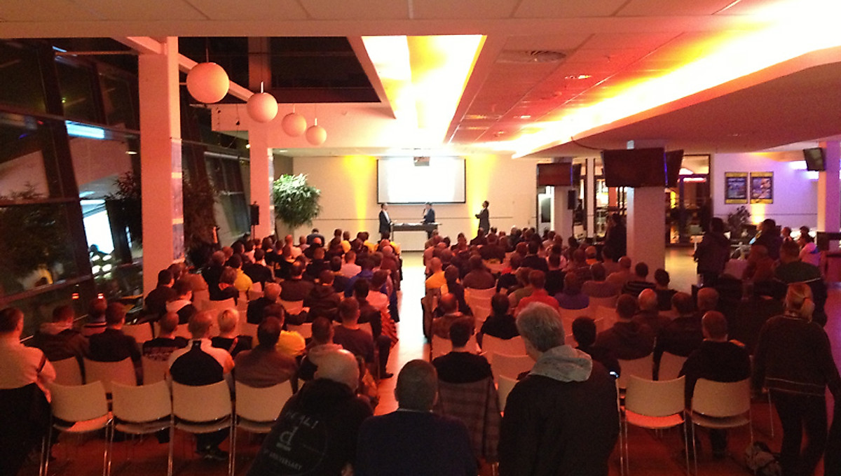 Geschäftsführung und Rechtsanwalt Dr. Jörg Heyer diskutieren mit über 200 Fans und Mitgliedern