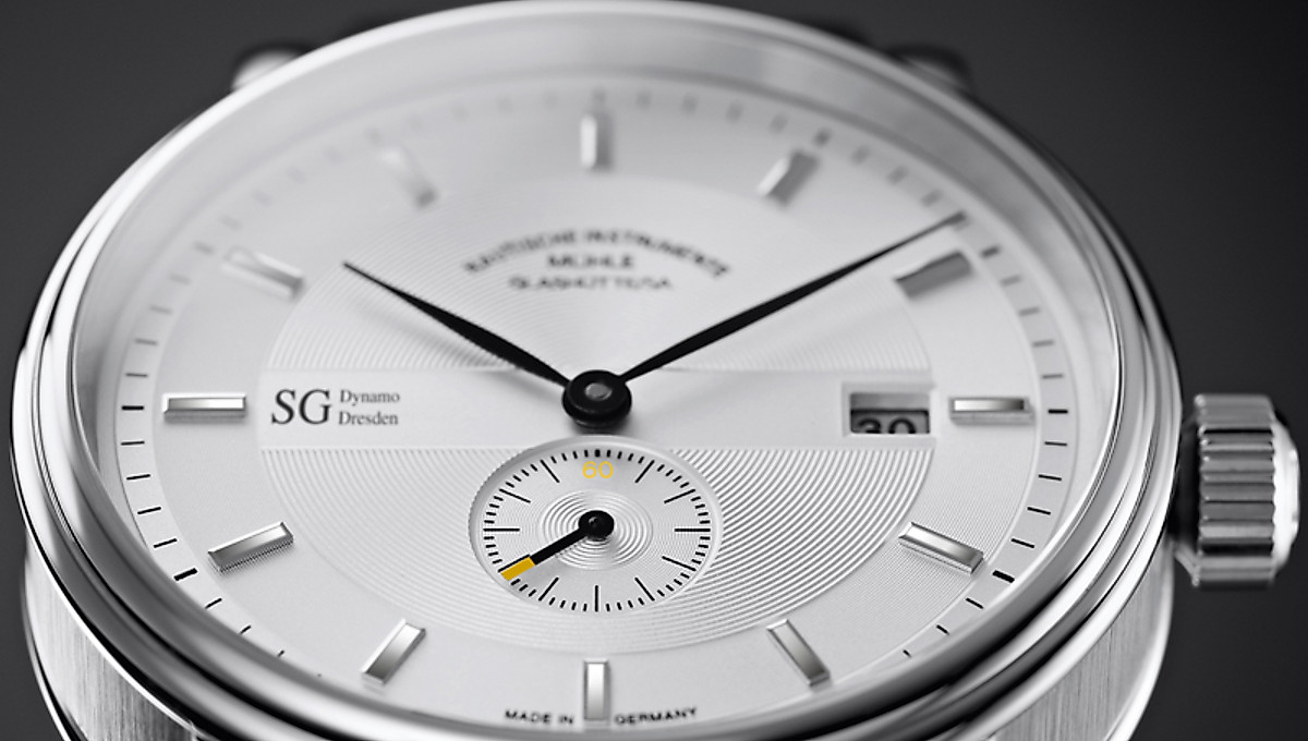 {media-left}Die Sonderedition des Modells „Teutonia II Kleine Sekunde“ transportiert klassische Eleganz und bodenständigen Luxus. Jede dieser hochwertigen Uhren ist ein individuelles Statement, das der Verbundenheit seines Trägers mit dem Verein Ausdruck verleiht. Durch den Schriftzug „SG Dynamo Dresden“ im Zifferblatt, eine das Jubiläum dokumentierende gelbe 60 in der Sekundenanzeige und das schwarze Lederarmband mit gelber Naht hebt sich die „Teutonia II Kleine Sekunde“ in der Edition „SG Dynamo Dresden“ vom Standardmodell ab.