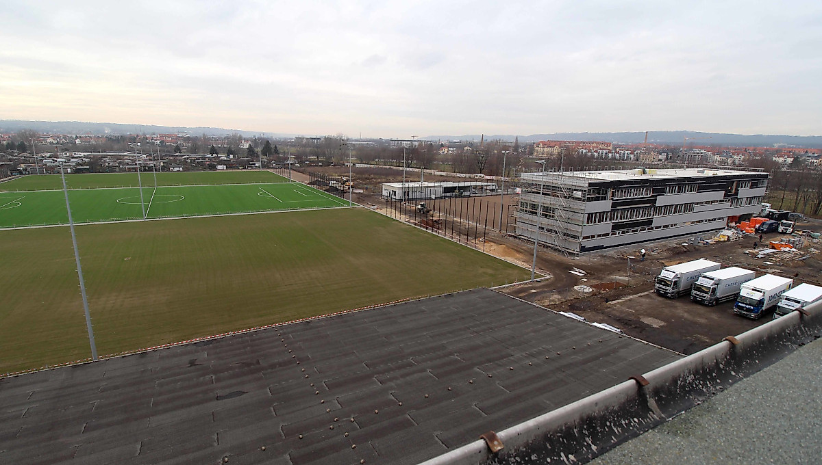 Auch in der kalten Jahreszeit schreitet der Bau von Dynamos neuem Trainingszentrum weiter voran. Anfang Dezember ist bereits die Fußbodenheizung im kompletten Funktionsgebäude verlegt, der Estrich eingebracht sowie der Fahrstuhl-Einbau abgeschlossen.Im Innenbereich werden die Installationen der gebäudetechnischen Anlagen fortgesetzt. Das Hauptaugenmerk liegt dabei auf der Montage der Lüftungsanlage. Über die Weihnachtsfeiertage soll dann die Heizung zum ersten Mal testweise in Betrieb genommen werden.