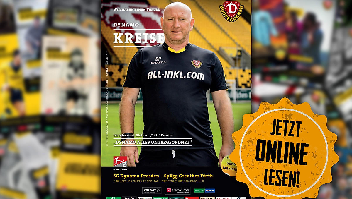 Für viele Schwarz-Gelbe gehört er zum Heimspiel wie Bratwurst und Bier: Der KREISEL. Auf Erstgenanntes und viele weitere Teile des Heimspiel-Erlebnisses im Rudolf-Harbig-Stadion müssen die Anhänger der SGD aktuell verzichten – nicht aber auf das Stadionmagazin.Ab sofort steht die aktuelle Ausgabe zum Heimspiel gegen die SpVgg Greuther Fürth online zur Verfügung. Darin findet ihr alle Infos rund um die Partie, ein Porträt unserer Gäste sowie ein ausführliches Interview mit unserem langjährigen Zeugwart und Busfahrer Dietmar "Ditti" Preußer.