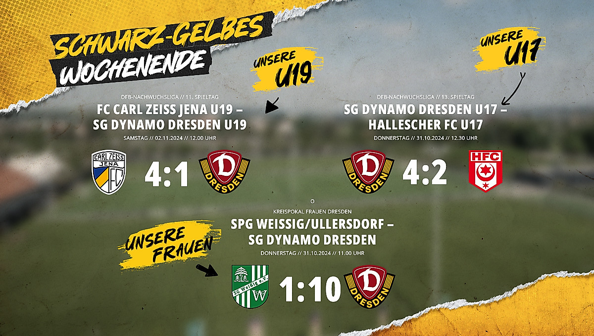 Das schwarz-gelbe Wochenende begann bereits am Reformationstag und hielt für die Sportgemeinschaft zunächst zwei Siege bereit, bevor es am Samstag eine herbe Pleite in Jena gab.