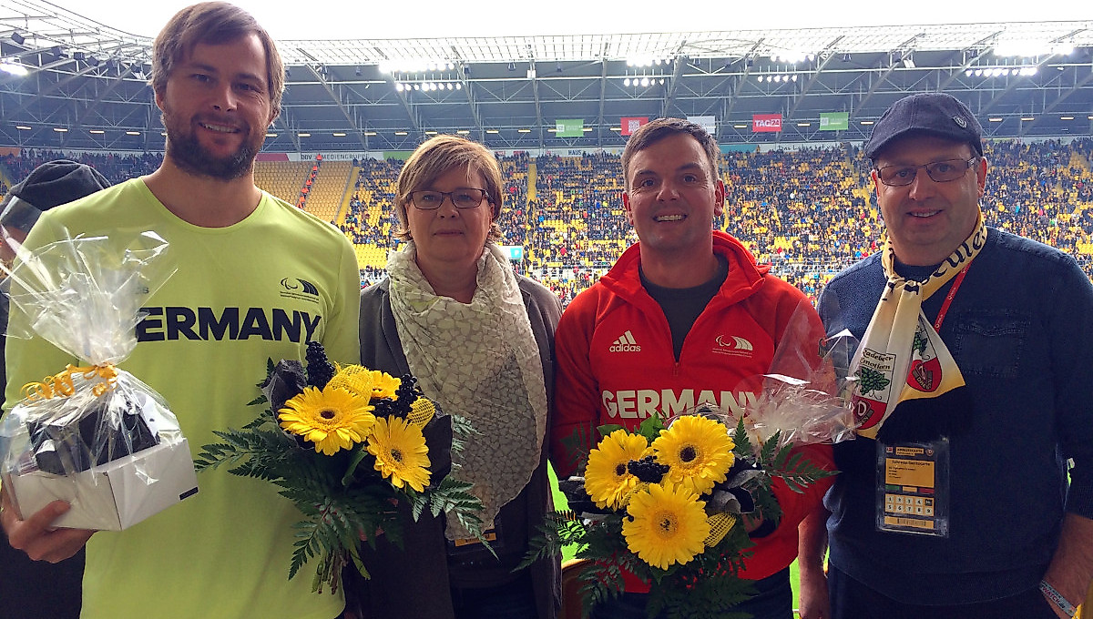 Auf Einladung des Präsidiums der SG Dynamo Dresden waren zum Heimspiel gegen den VfB Stuttgart zwei Vertreter der deutschen Paralympics-Mannschaft dabei.Sitzvolleyballer Alexander Schiffler sicherte sich mit seinem Team in Rio Rang Sechs, Dressurreiter Steffen Zeibig gewann mit der Mannschaft Silber und landete in der Einzelwertung auf Platz Vier. Beide Sportler sind in Dresden geboren und aufgewachsen, entsprechend groß war die Freude über das Fünf-Tore-Spektakel.