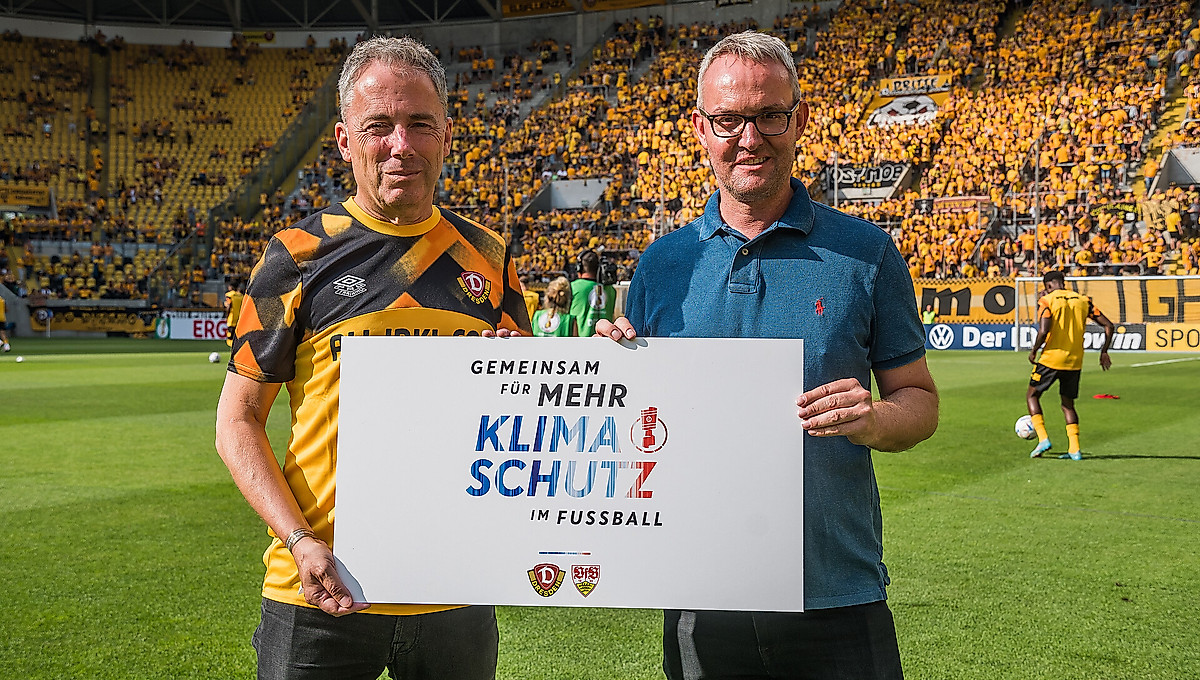 Um ihr jeweiliges Engagement zugunsten der Umwelt auch optisch zu bekräftigen, kamen Jürgen Wehlend, Geschäftsführer der SG Dynamo Dresden, und Alexander Wehrle, Vorstandsvorsitzender des VfB Stuttgart, im Vorfeld der Partie zu einem gemeinsam Fototermin zusammen. Dabei beschlossen die beiden Manager, dass sich beide Klubs auch an der diesjährigen DFB-Pokal-Spende für die gemeinnützige Organisation „Sports for Future“ beteiligen, die der Verband am Ende der Saison 2022/2023 verdoppelt.