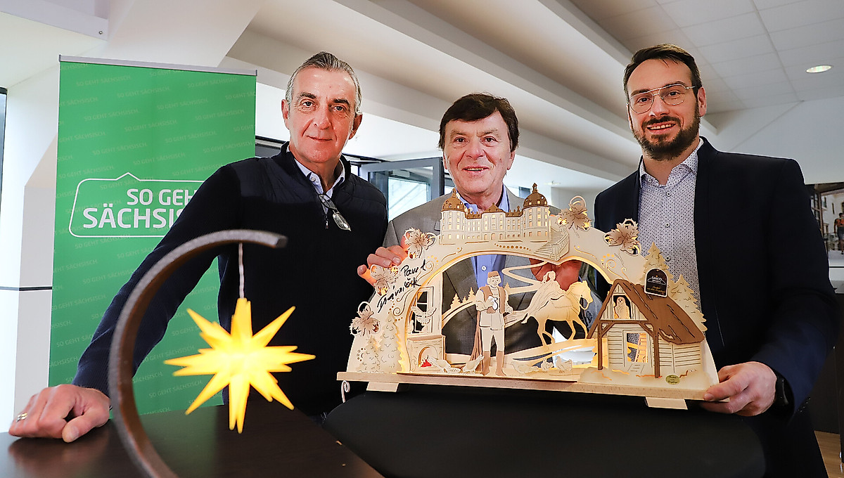 Der Schwibbogen aus der Sonderkollektion „Drei Haselnüsse für Aschenbrödel“ im Wert von 399 Euro wurde von „Prinz“ Trávníček signiert und im schwarz-gelben Wohnzimmer an Ralf Minge übergeben, der dem Stiftungsrat der Dixie-Dörner-Stiftung angehört. Diese wird den vollständigen Erlös der Versteigerung erhalten und für Sportprojekte in der Region einsetzen.