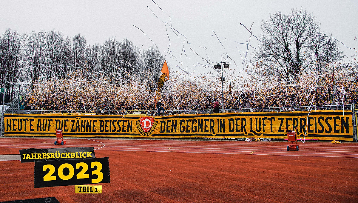 Das Jahr 2023 war definitiv ein besonderes für unsere Sportgemeinschaft, nicht nur wegen des 70. Vereinsgeburtstages. Sportlich gesehen hat Dynamo trotz des verpassten Aufstiegs einen Punkteschnitt von 2,17 erreicht. Dies ist gleichbedeutend mit dem besten Jahresergebnis nach der Wende. 30 Pflichtspielsiege in einem Kalenderjahr sind außerdem Vereinsrekord. Mit 89 Punkten hat die SGD im Jahr 2023 weiterhin den Drittligarekord geknackt. Diesen hielt bis dato der 1. FC Heidenheim mit 85 Punkten im Jahr 2013. Im ersten Teil unseres Jahresrückblicks schauen wir zurück auf die Aufholjagd zu Beginn der Rückrunde 2022/2023 und den Start der Jubiläumswochen.