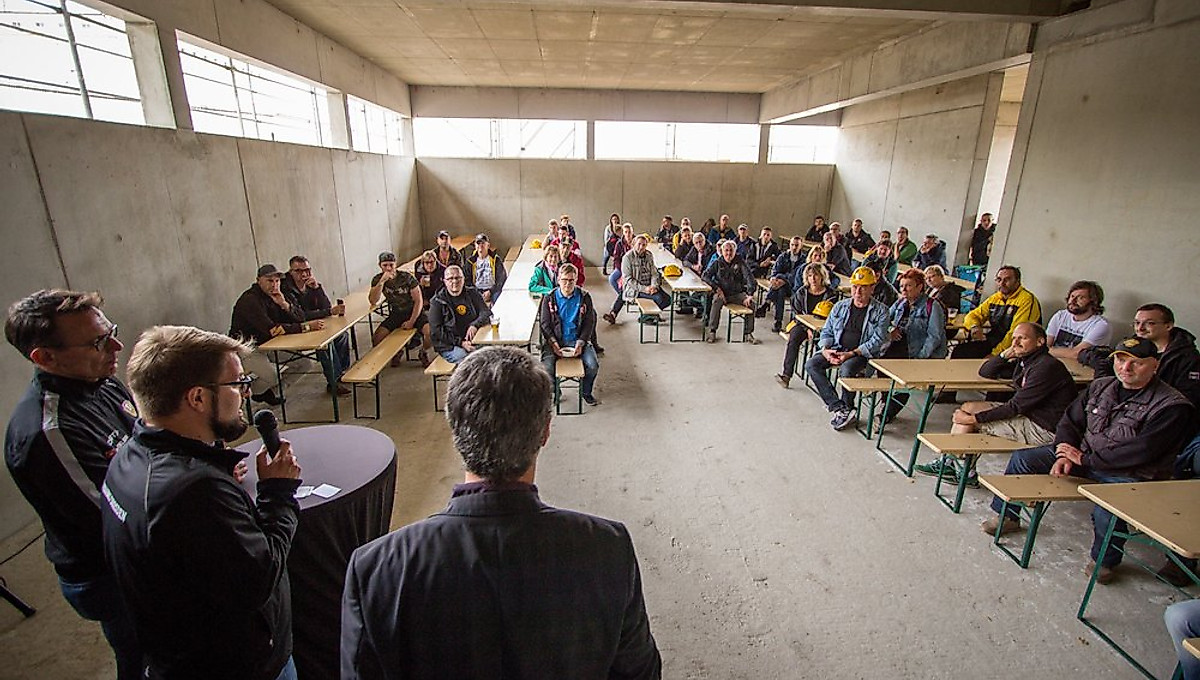 Nach einer emotionalen Begrüßungsrede von Dynamo-Präsident Holger Scholze starteten im Viertelstundentakt Führungen über die Baustelle.