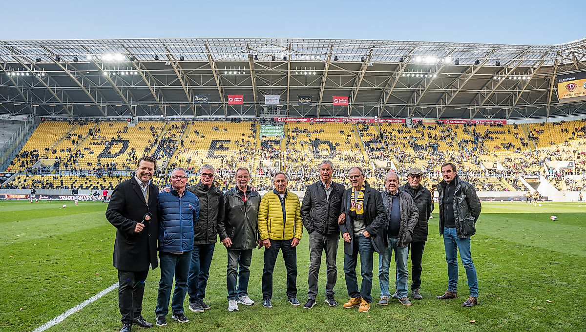 Tradition verbindet – Tradition stärkt. Die SGD hat beim Zweitliga-Heimspiel am 30. Oktober 2021 gegen den SV Sandhausen die Junioren-Europameister von 1970 im Rudolf-Harbig-Stadion begrüßt.