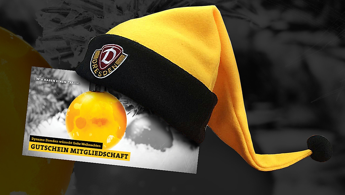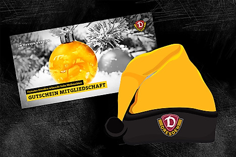 Du suchst ein dynamisches Weihnachtsgeschenk für deinen Liebsten? Dann haben wir einen heißen Tipp für dich: Lege die Vereinsmitgliedschaft mit allen Vorteilen wie dem Ticketvorkaufsrecht als Gutschein* unter den Weihnachtsbaum!Exklusiv im Dynamo-Fanshop erhältst du das Gutscheinpaket – bestehend aus einem Jahresbeitrag für die Mitgliedschaft, der einmaligen Aufnahmegebühr in Höhe von 10 Euro und einen Satz warme Ohren in Form der kultigen Dynamo-Weihnachtsmütze.