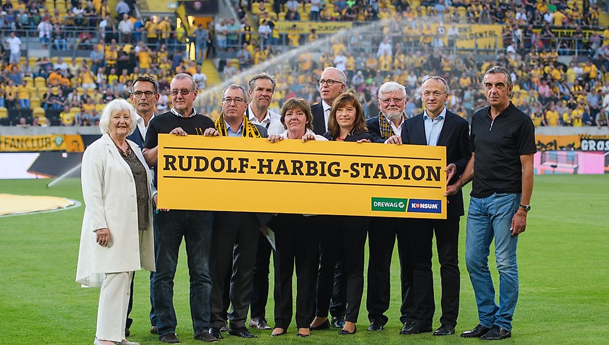 Dynamo-Stadion? Oder Rudolf-Harbig-Stadion? Diese Frage bewegte im Spätsommer 2018 ganz Fußball-Dresden und alle Dynamo-Interessierte. Am Mittwoch, vor genau einem Jahr, am 18.09.2018, gab es darauf um 18.17 Uhr die Antwort.Im Rahmen des Spieltagsprogramms beim Nachholspiel gegen den Hamburger SV verkündete die SGD zusammen mit der Stadion Dresden Projektgesellschaft mbH & Co.KG sowie den Namensgebern KONSUM DRESDEN eG und DREWAG – Stadtwerke Dresden GmbH: Die Sportgemeinschaft spielt „wieder“ im Rudolf-Harbig-Stadion!