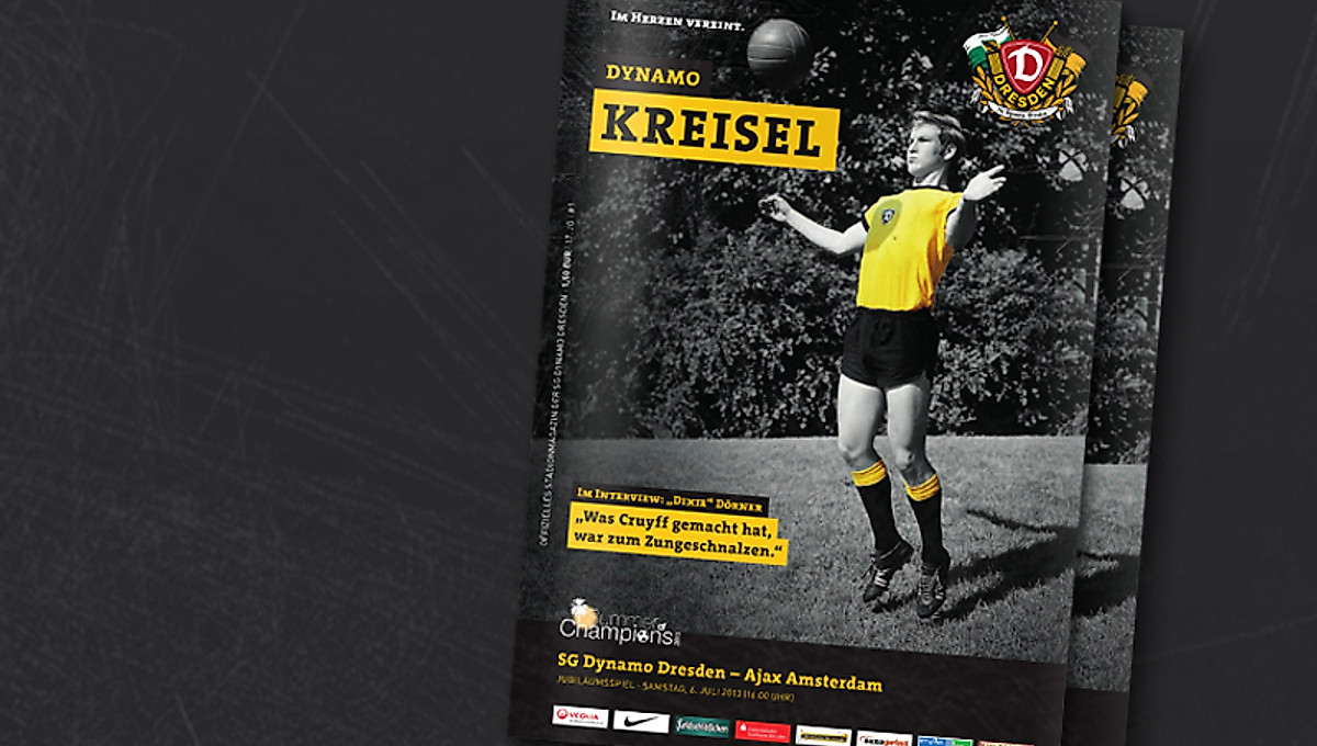 Zum Jubiläumsspiel gegen Ajax Amsterdam erscheint am Samstag die erste Ausgabe des Programmheftes "Dynamo-KREISEL" in der Saison 2013/14. Neben allem, was man rund um Gegner, Spiel und Dynamo wissen muss, gibt es folgende Inhalte: