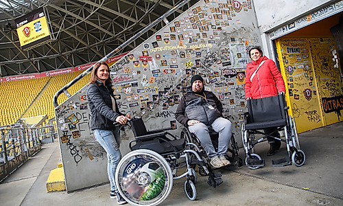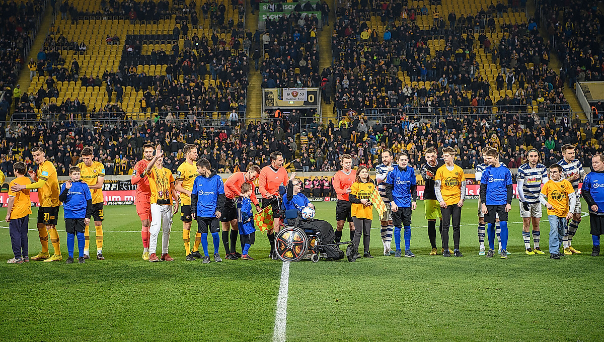 Ebenfalls vor der Partie überreichte die GHD Gesundheits-GmbH zwei Rollstühle an die Sportgemeinschaft. Diese können zukünftig im Stadion bei Heimspielen der SGD oder anderen Veranstaltungen zum Einsatz kommen. Auf den Besucherrängen des Rudolf-Harbig-Stadion waren außerdem rund 100 Kinder und Menschen mit Behinderung vom Verein Rollimaus, verschiedenen Wohneinrichtungen der Jugendhilfe sowie von „Rehability Dresden“ und der Lebenshilfe zu Gast, denen der Verein Freikarten zur Verfügung gestellt hatte.