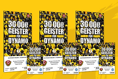 Im Zuge der Aktion „30.000+ Geister für Dynamo“ versteigert die SGD vor dem DFB-Pokal-Spiel gegen den SV Darmstadt 98 über mehrere Tages-Auktionen einige Geistertickets, die mit ganz besonderen Seriennummern bedruckt sind.Aufgepasst, liebe Dynamo-Fans: Zu jedem Geisterticket der Tages-Auktion gibt es darüber hinaus noch eine edle Alu-Dibond-Platte (216 x 420 Millimeter), auf der das einzigartige Ticket vergrößert abgebildet und bereit für einen Ehrenplatz in den eigenen vier Wänden oder einem anderen Lieblingsort ist.