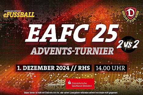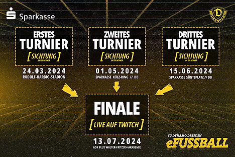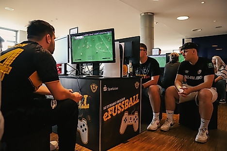 Seit der Saison 2024/25 geht Schwarz-Gelb auch in der virtuellen Welt in "EA FC" auf Punktejagd und die erste eFußball-Mannschaft in der Vereinsgeschichte der SGD wurde gegründet. Dabei mussten sich die Teilnehmer, die allesamt aus Mitgliedern der Sportgemeinschaft bestanden, bei insgesamt drei verschiedenen Qualifikationsturnieren ihr Ticket für den großen Bewerbertag in der AOK PLUS Walter-Fritzsch-Akademie sichern.